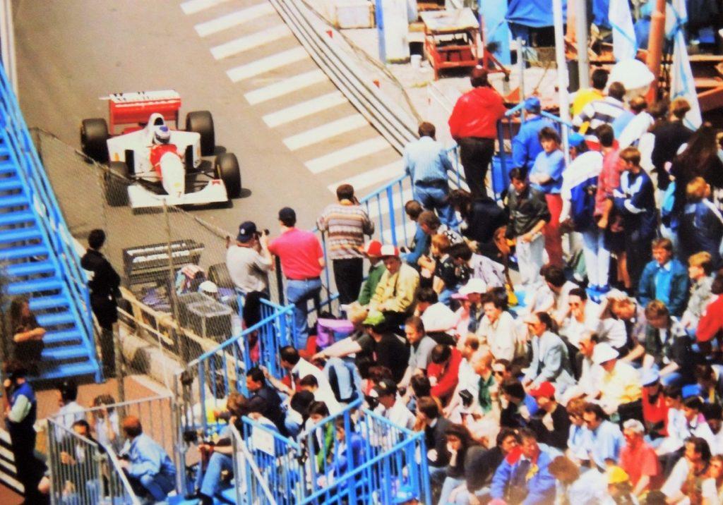 People were kind. We sneaked into a lift at the Hotel De Paris to go up to the next level in the street. A room steward had a huge floral display he must have been delivering to a room. He smiled at us, plucked two flowers from the display and gave them to us. We begged the doorman at The Sporting Club of Monaco to let us use the toilet before it was closed for the day. We noticed a huge Senna Display and he kindly turned the lights back on so we could see it in all its glory. I bought a silver chain at a jeweller and a silver tiny F1 car, a heart and an initial A to put on it. The jeweller carefully took the poster advertising the GP with Ayrton’s picture on it and put it in a cardboard tube before presenting it to me. It was honestly like the principality had lost their own son. Almost like a beauty in the stillness and sadness.