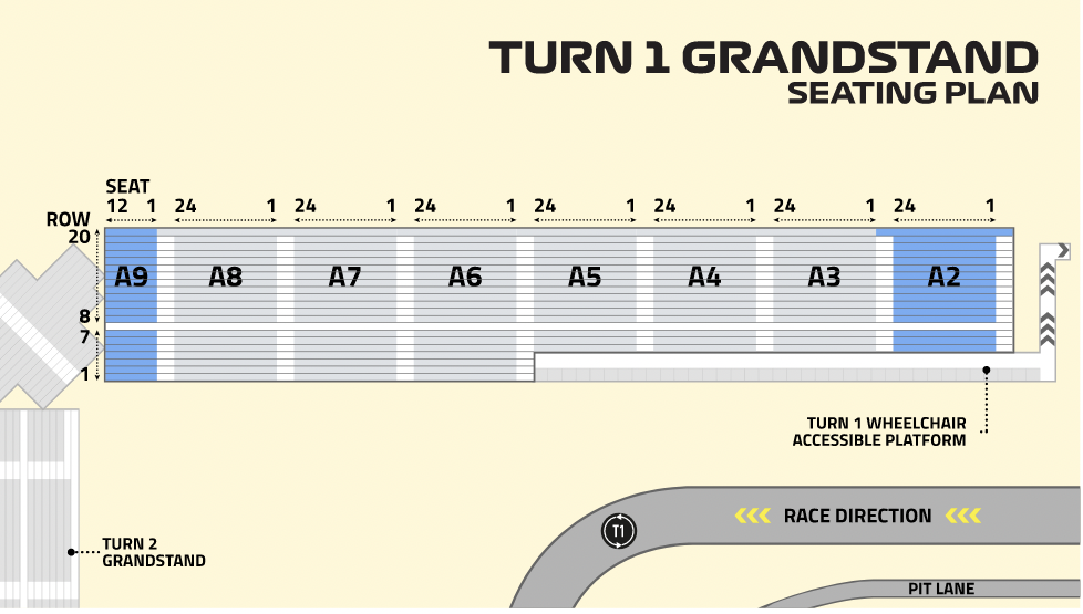 Turn 1 Grandstand Seat Type & Layout.